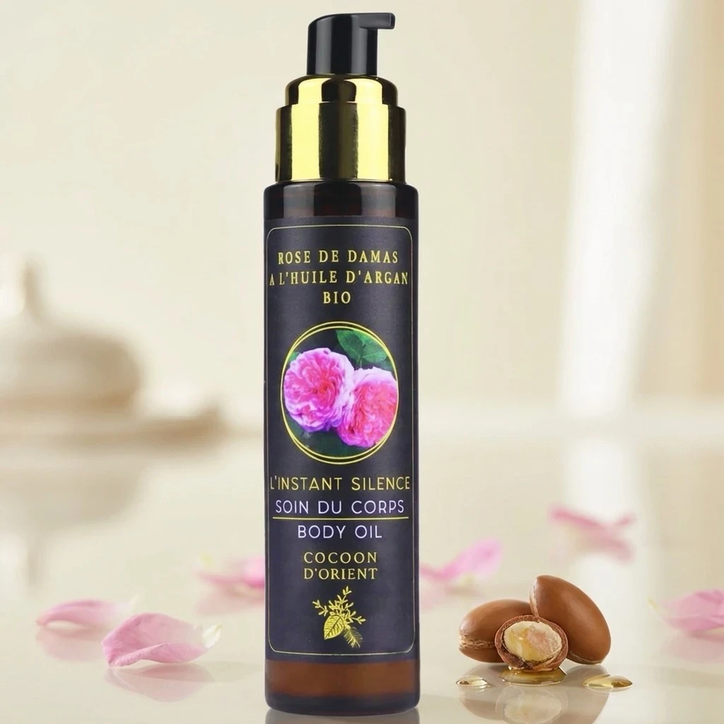 Soin corps anti-âge L'INSTANT SILENCE hydratant à l’huile d’Argan bio & Rose de Damas.